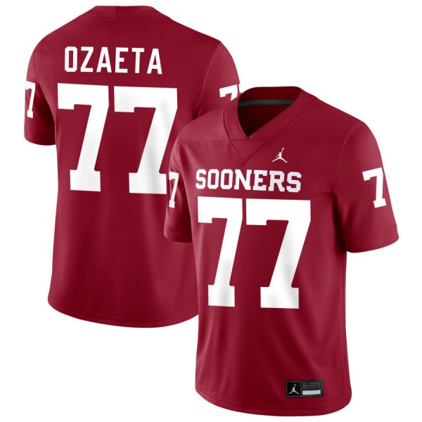 • Men Heath Ozaeta Crimson Oklahoma Sooners #77 College Football 2025-26 Jerseys