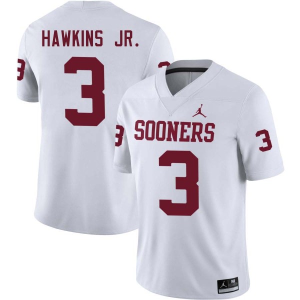 Men's Michael Hawkins Jr. White Oklahoma Sooners #3 College Football NCAA Jerseys 699199-671