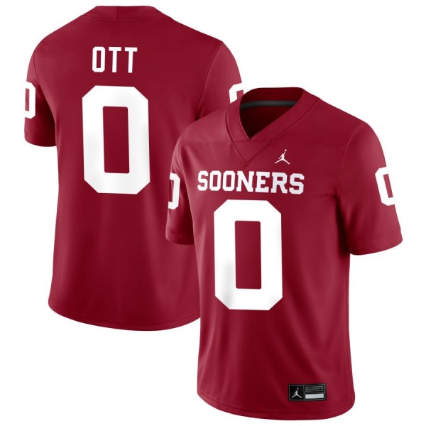 • Mens Jaydn Ott Crimson Oklahoma Sooners #0 College Football Embroidery Jersey