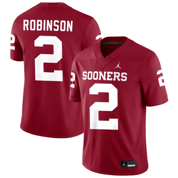 Get the ultimate fan gear with our wide selection of Mens Omarion Robinson Crimson Oklahoma Sooners #2 College Football High School Jerseys 357371-242. Cheer on your favorite player in style and show your support for your team. With a variety of sizes and styles available, you can find the perfect jersey for every fan. Shop now for the best deals and score your favorite player's look!