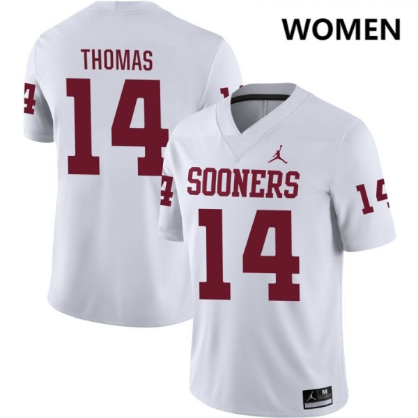 • Women Elijah Thomas White Oklahoma Sooners #14 College Football Embroidery Jerseys