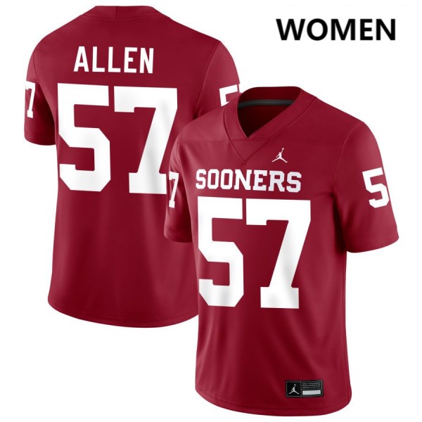 • Women Gunnar Allen Crimson Oklahoma Sooners #57 College Football High School Jerseys