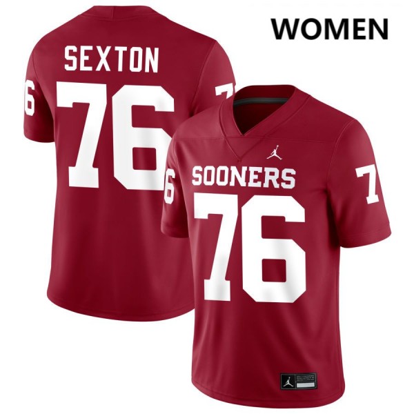 • Women Jacob Sexton Crimson Oklahoma Sooners #76 College Football University Jersey