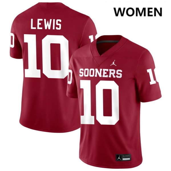 • Women Kip Lewis Crimson Oklahoma Sooners #10 College Football University Jerseys