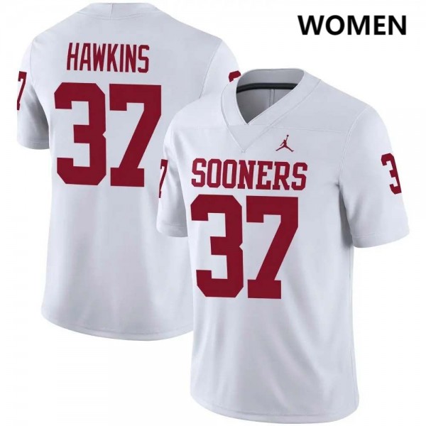 • Women Maliek Hawkins White Oklahoma Sooners #37 College Football Alumni Jerseys