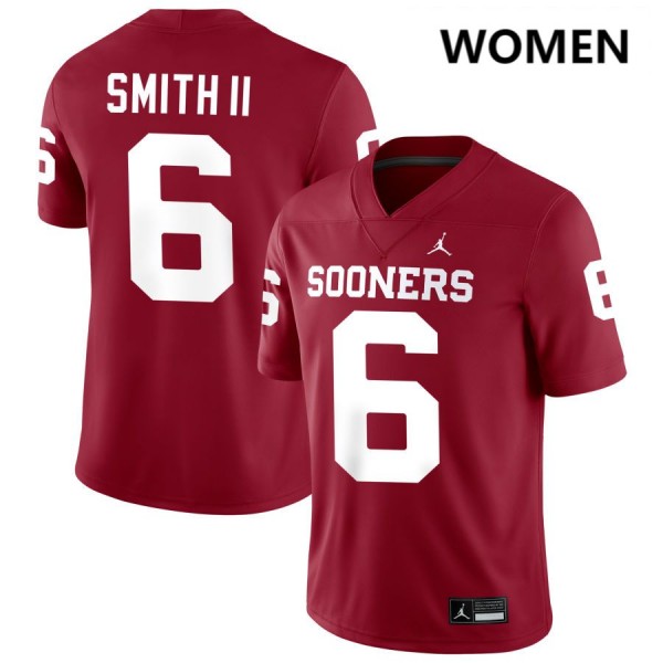 Women Nigel Smith II Crimson Oklahoma Sooners #6 College Football 2025-26 Jersey 871398-350
