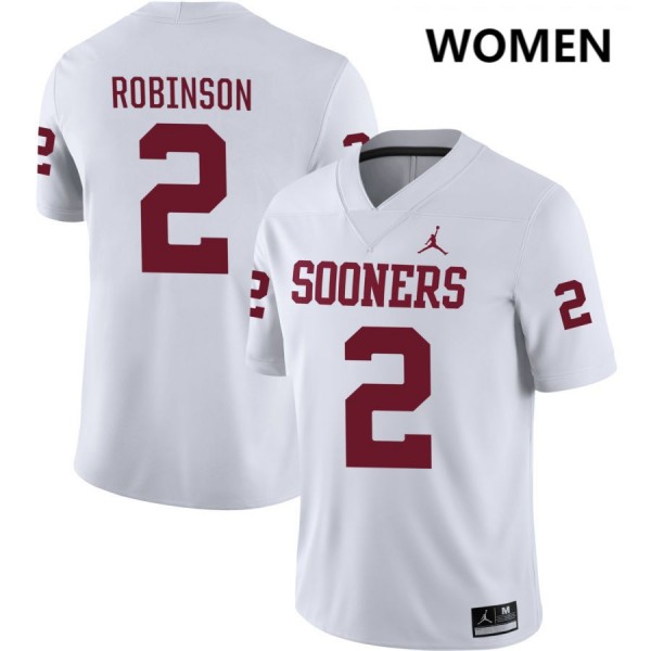 • Women Omarion Robinson White Oklahoma Sooners #2 College Football Embroidery Jersey