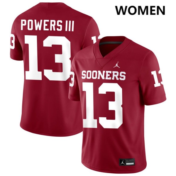 • Women Reggie Powers III Crimson Oklahoma Sooners #13 College Football University Jerseys