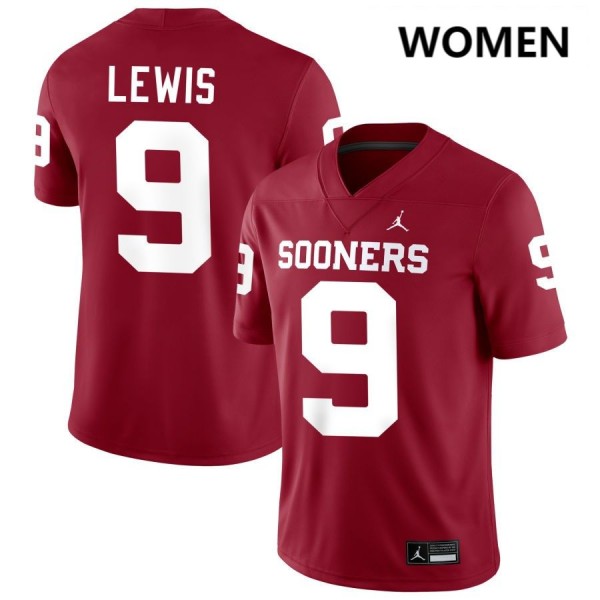 • Women's Keontez Lewis Crimson Oklahoma Sooners #9 College Football Player Jerseys