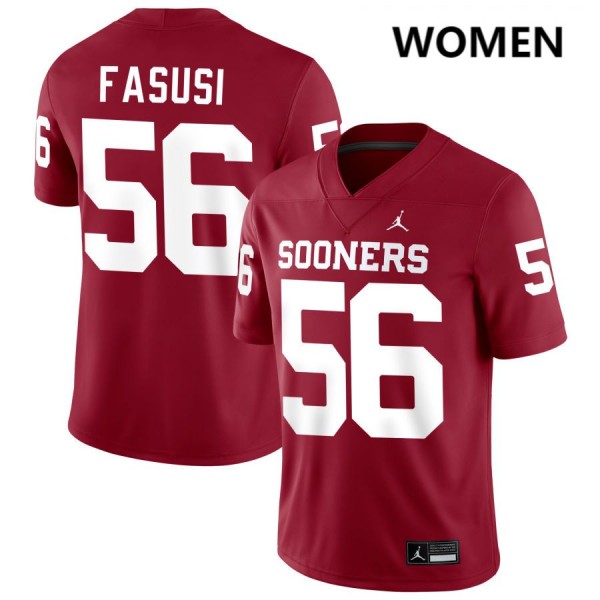 • Women's Michael Fasusi Crimson Oklahoma Sooners #56 College Football High School Jersey