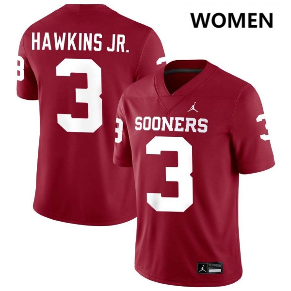 • Women's Michael Hawkins Jr. Crimson Oklahoma Sooners #3 College Football Alumni Jerseys