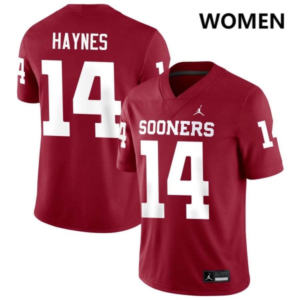 • Women's Trystan Haynes Crimson Oklahoma Sooners #14 College Football University Jerseys