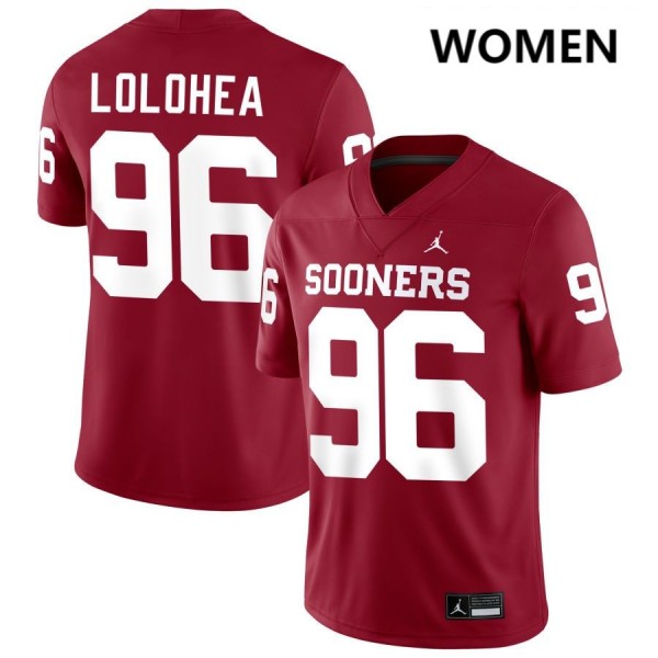 • Women Siolaa Lolohea Crimson Oklahoma Sooners #96 College Football Replica Jersey