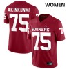 Womens Daniel Akinkunmi Crimson Oklahoma Sooners #75 College Football Limited Jersey 208053-557