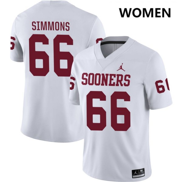 • Womens Derek Simmons White Oklahoma Sooners #66 College Football University Jerseys