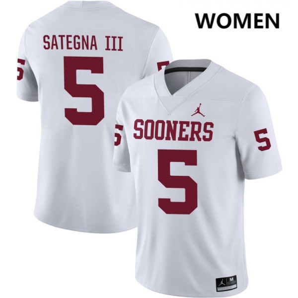 • Womens Isaiah Sategna III White Oklahoma Sooners #5 College Football High School Jerseys