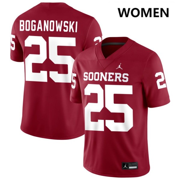 • Womens Michael Boganowski Crimson Oklahoma Sooners #25 College Football Replica Jersey