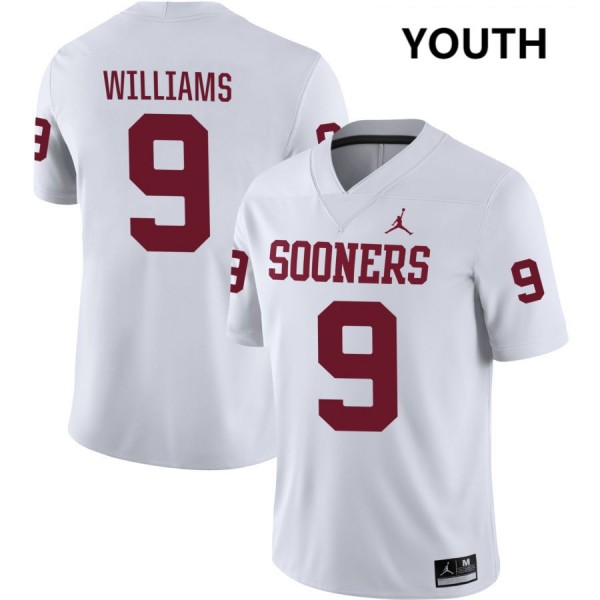 Youth Gentry Williams White Oklahoma Sooners #9 College Football Game Jersey 628126-720