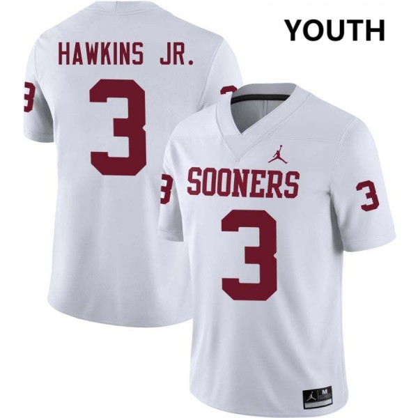 Youth Michael Hawkins Jr. White Oklahoma Sooners #3 College Football NCAA Jerseys 105116-841