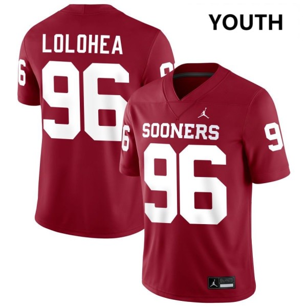 Youth Siolaa Lolohea Crimson Oklahoma Sooners #96 College Football Official Jersey 133334-658