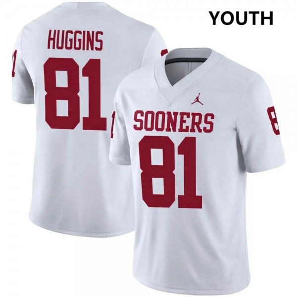 • Youth Will Huggins White Oklahoma Sooners #81 College Football University Jersey